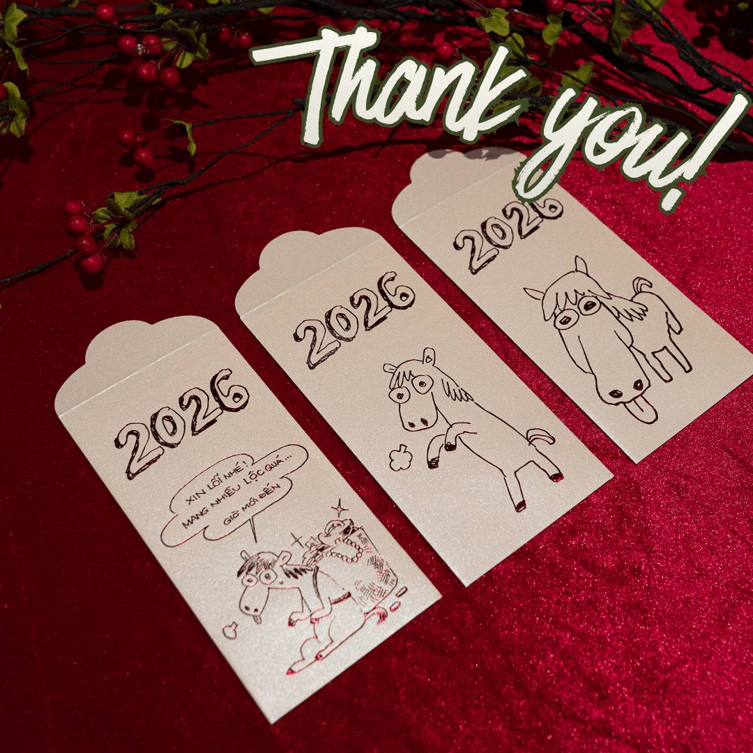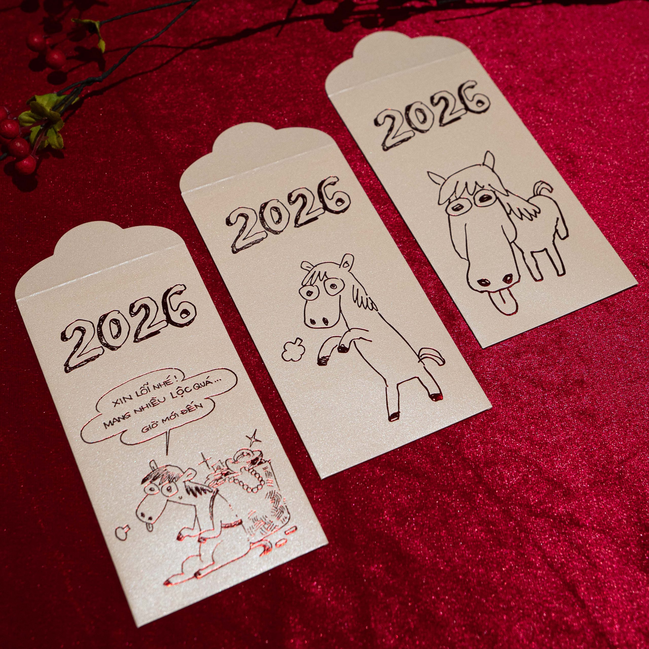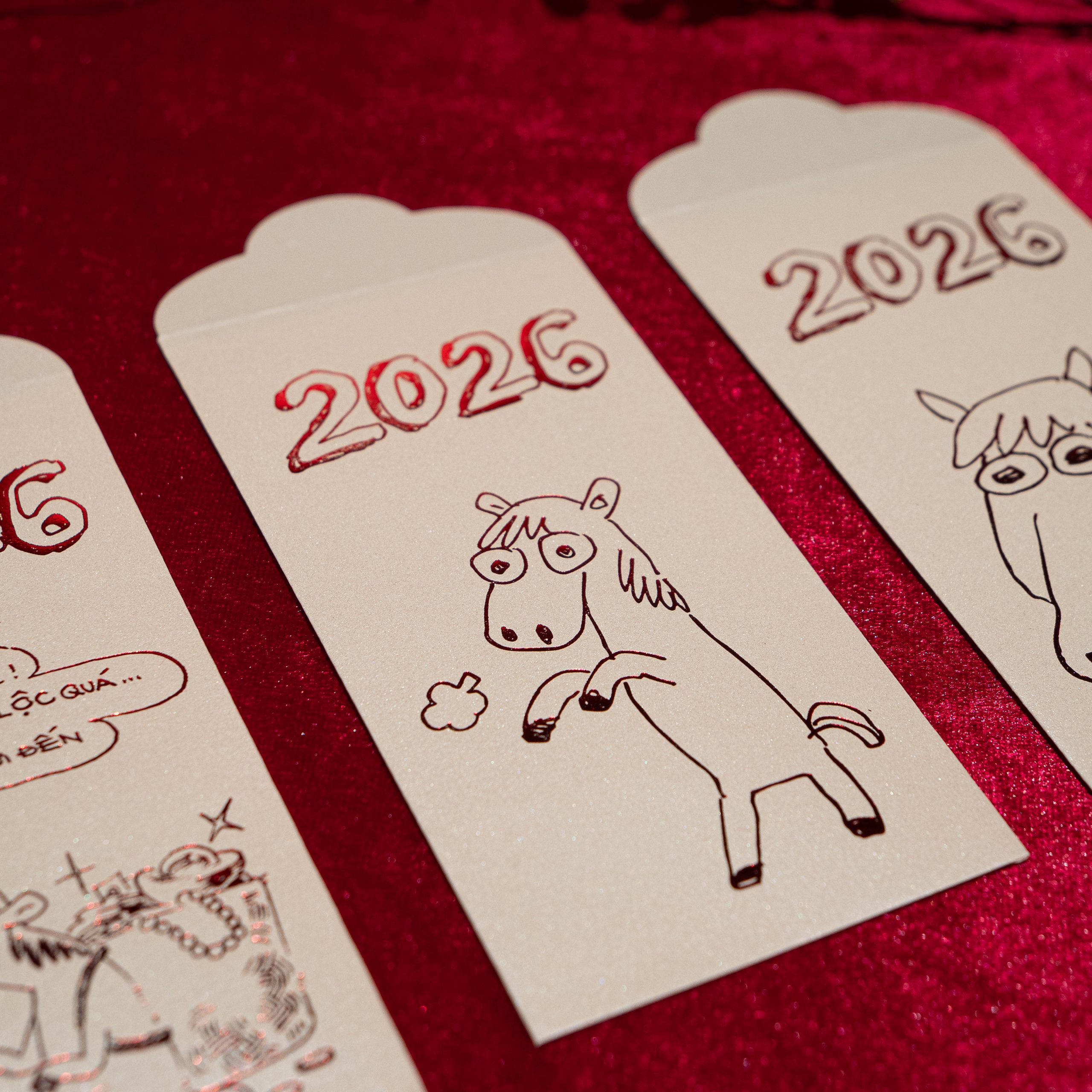 “Hí Hí” không cố gắng định nghĩa Tết theo khuôn mẫu trang trọng hay nghi thức, mà kể Tết bằng tiếng cười, bằng nét vẽ dí dỏm và những câu chúc dễ thương, gần gũi. Mỗi bao lì xì là một lời nhắn nhủ nhỏ: hãy cho phép mình vui hơn, nhẹ hơn và tin rằng những điều tốt đẹp vẫn đang trên đường tìm đến.